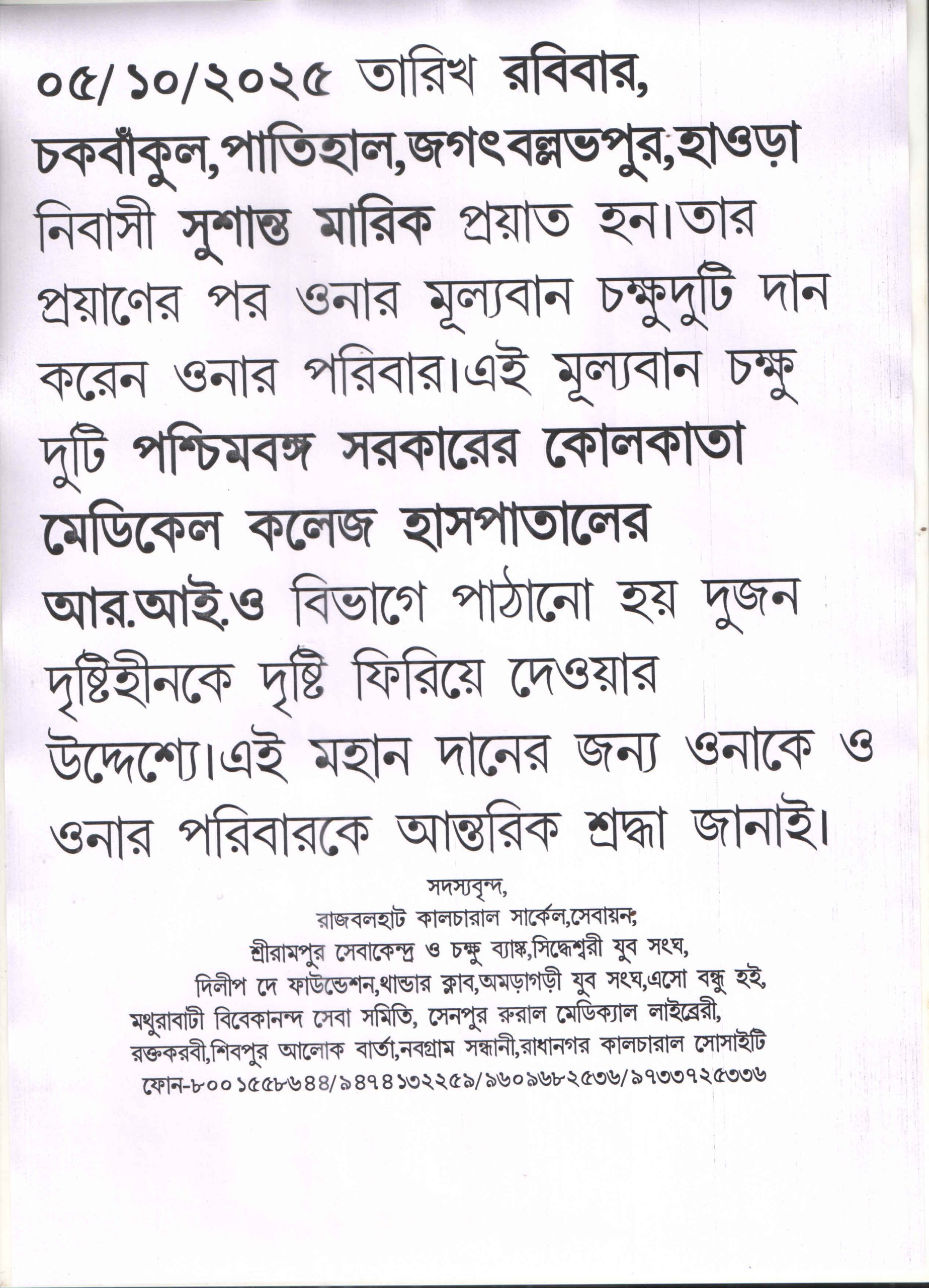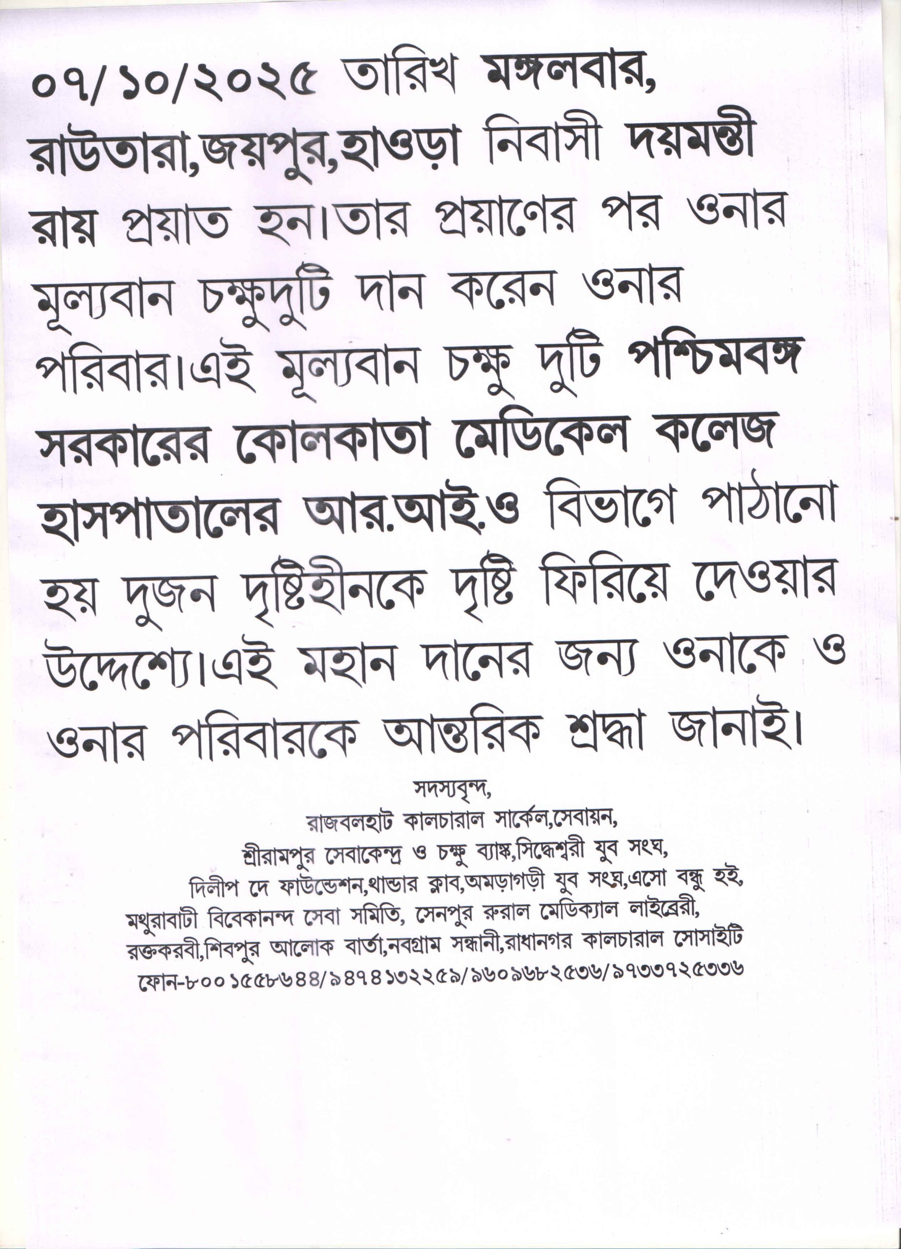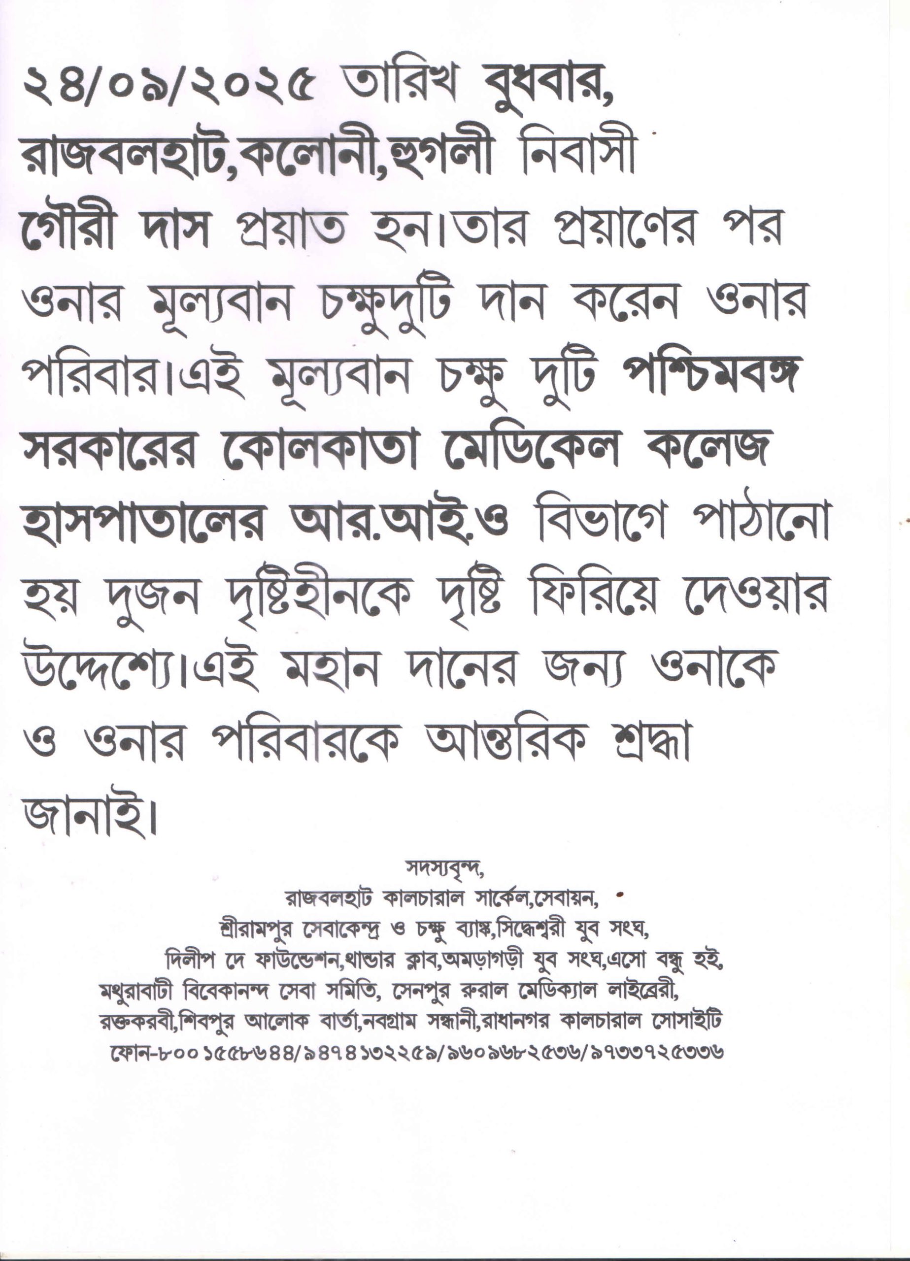 Gallery 01 Medical Service c c AMBULANCE SERVICES HEARSE SERVICES EYE OPD BLOOD DONATION CAMP DURING COVID-19 PANDEMIC MEDICINE DISTRIBUTION HEALTH CAMP THALASSEMIA TAST CAMP GENERAL OPD TARUN CHAKRABARTY NEWS READER OF AKASBANI EYE OPD INAUGURATION 13 NO BODY DONATIONION 14 NO BODY DONATIONION 15 NO BODY DONATION 1079 NO EYE DONATION 1080 NO EYE DONATION 1081 NO EYE DONATION 1082 NO EYE DONATION 1083 NO EYE DONATION 1084 NO EYE DONATION 1085 NO EYE DONATION 1086 NO EYE DONATION 1087 NO EYE DONATION 1088 NO EYE DONATION 1089 NO EYE DONATION 1090 NO EYE DONATION 1091 NO EYE DONATION 1092 NO EYE DONATION 02 Educational Service c FREE COACHING CENTRE DRAWING CLASS SPOKEN ENGLISH AND COMPETITIVE GK CLASSES BOOK DISTRIBUTION TO POOR STUDENT TRAINING OF SPECIALLY ABLED CHILDREN c 03 Social Service c COVID-19 RELIEF PLASTIC AND POLYTHENE ERADICATION TREE PLANTATION CLOTHES DISTRIBUTION TO POOR DISTRIBUTION OF TREES TO BLOOD DONORS IN BLOOD DONATION CAMPS c