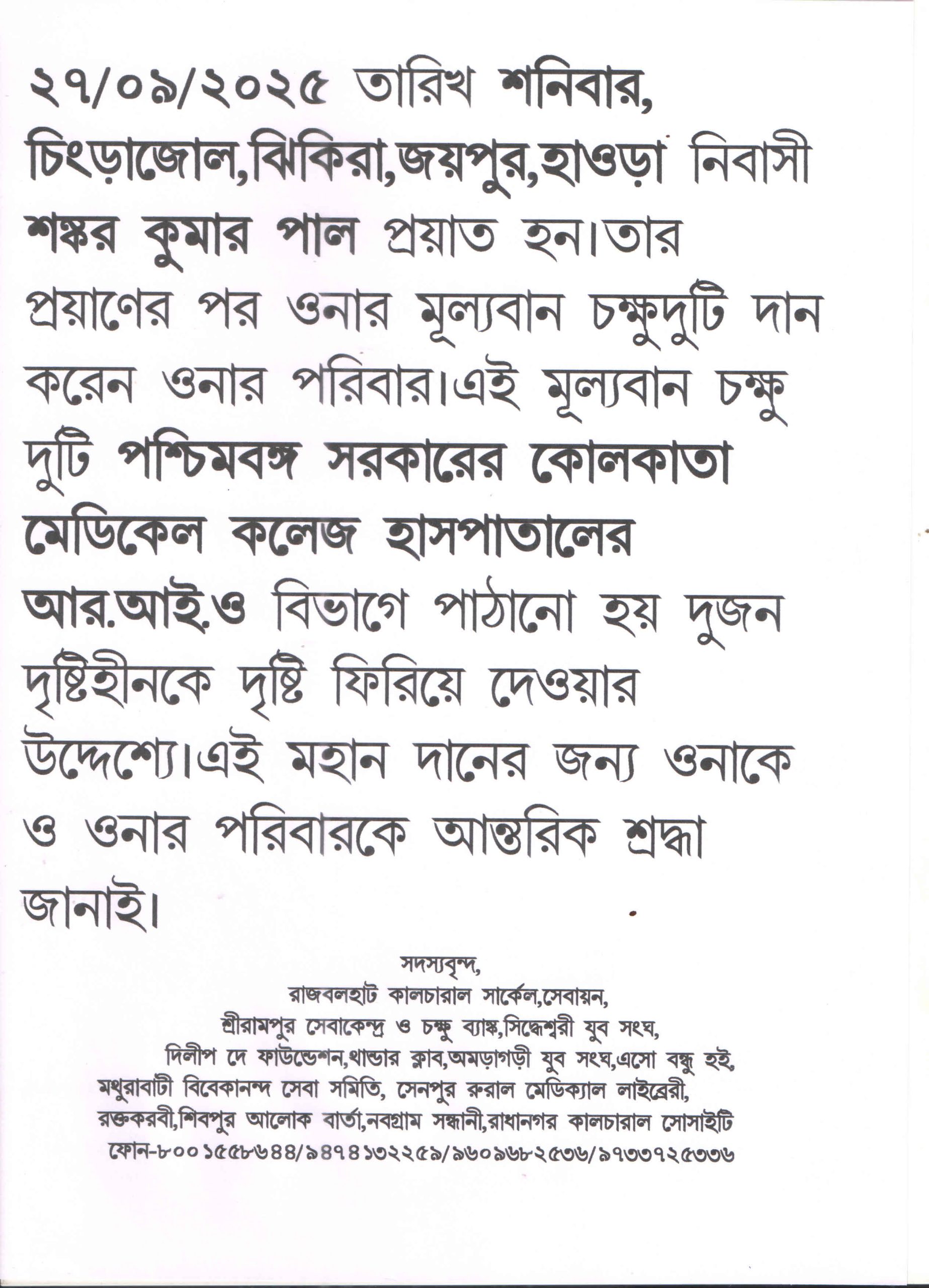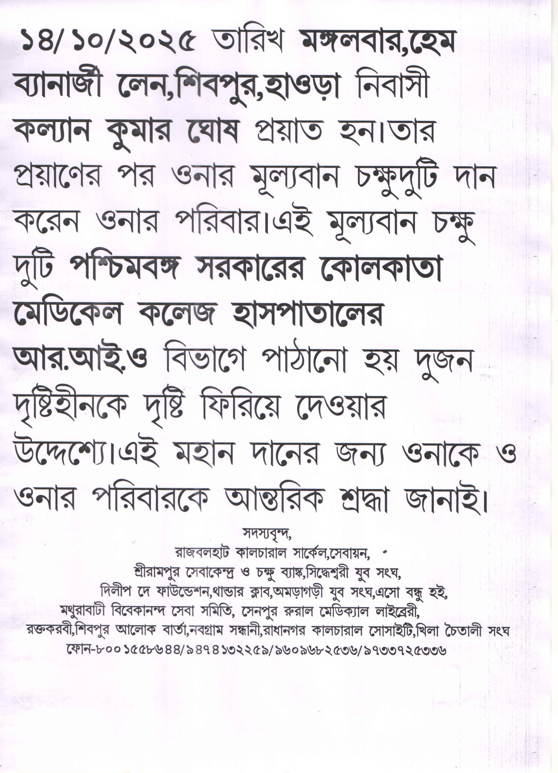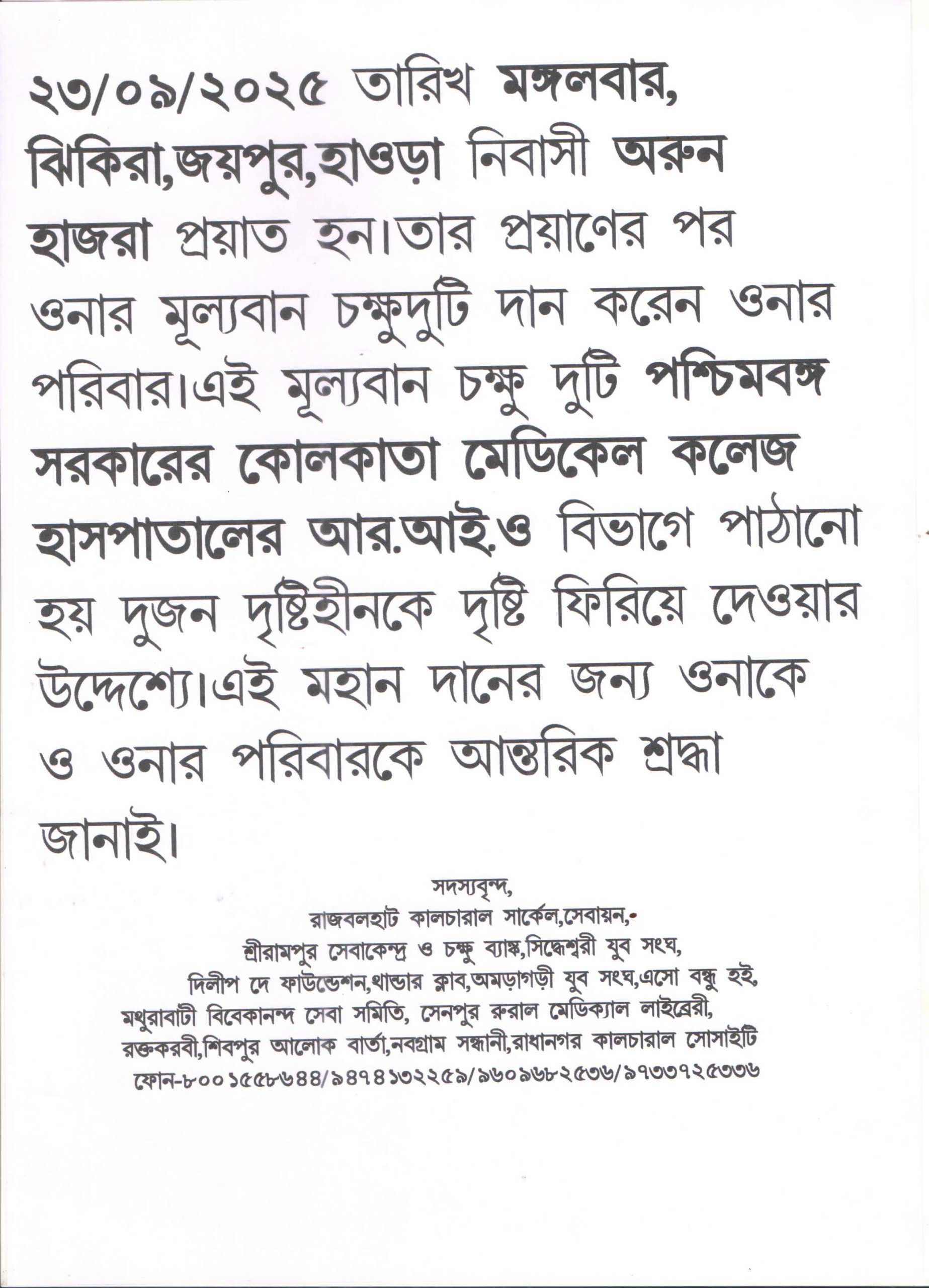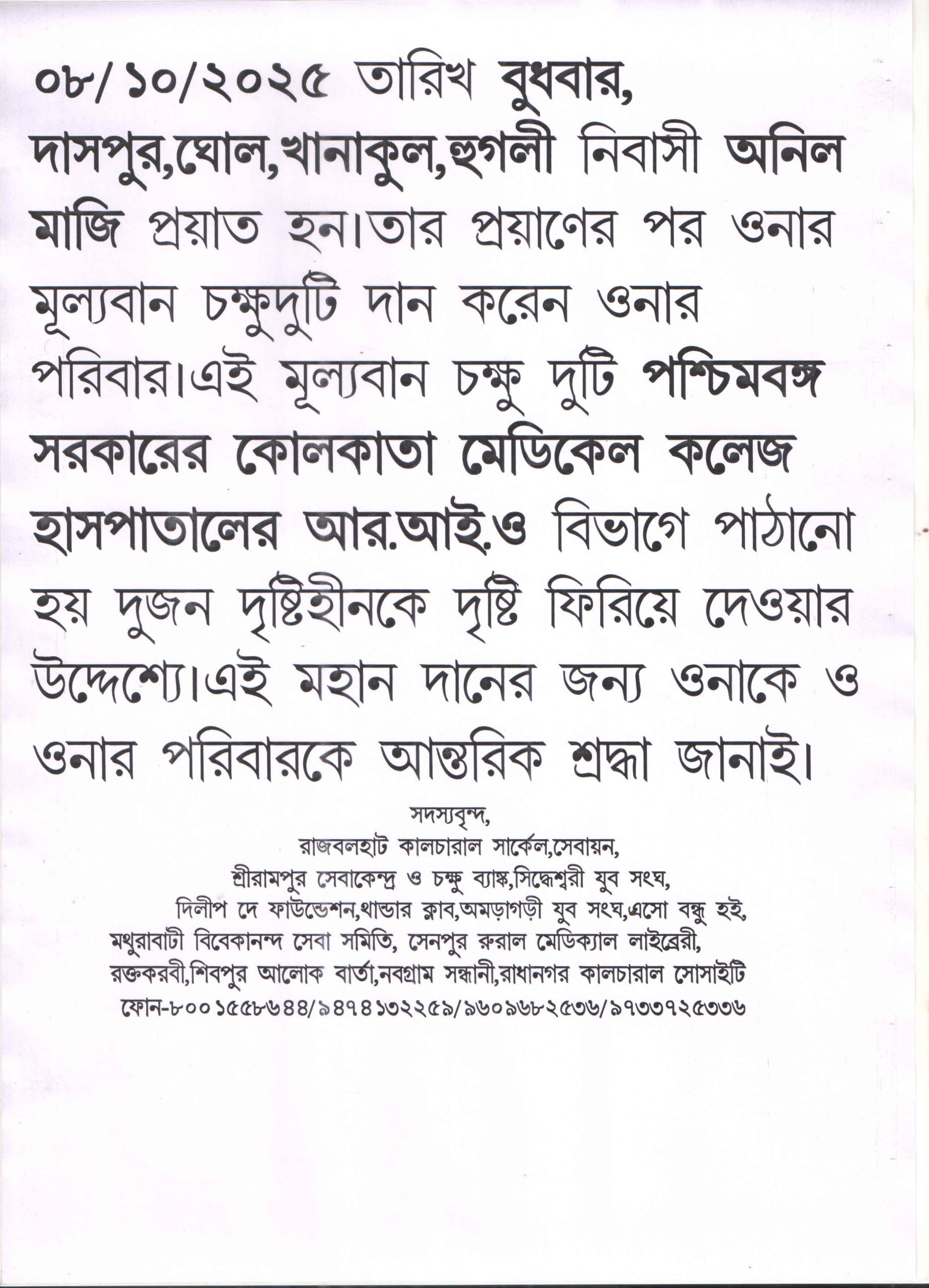 Gallery 01 Medical Service c c AMBULANCE SERVICES HEARSE SERVICES EYE OPD BLOOD DONATION CAMP DURING COVID-19 PANDEMIC MEDICINE DISTRIBUTION HEALTH CAMP THALASSEMIA TAST CAMP GENERAL OPD TARUN CHAKRABARTY NEWS READER OF AKASBANI EYE OPD INAUGURATION 13 NO BODY DONATIONION 14 NO BODY DONATIONION 15 NO BODY DONATION 1079 NO EYE DONATION 1080 NO EYE DONATION 1081 NO EYE DONATION 1082 NO EYE DONATION 1083 NO EYE DONATION 1084 NO EYE DONATION 1085 NO EYE DONATION 1086 NO EYE DONATION 1087 NO EYE DONATION 1088 NO EYE DONATION 1089 NO EYE DONATION 1090 NO EYE DONATION 1091 NO EYE DONATION 1092 NO EYE DONATION 02 Educational Service c FREE COACHING CENTRE DRAWING CLASS SPOKEN ENGLISH AND COMPETITIVE GK CLASSES BOOK DISTRIBUTION TO POOR STUDENT TRAINING OF SPECIALLY ABLED CHILDREN c 03 Social Service c COVID-19 RELIEF PLASTIC AND POLYTHENE ERADICATION TREE PLANTATION CLOTHES DISTRIBUTION TO POOR DISTRIBUTION OF TREES TO BLOOD DONORS IN BLOOD DONATION CAMPS c